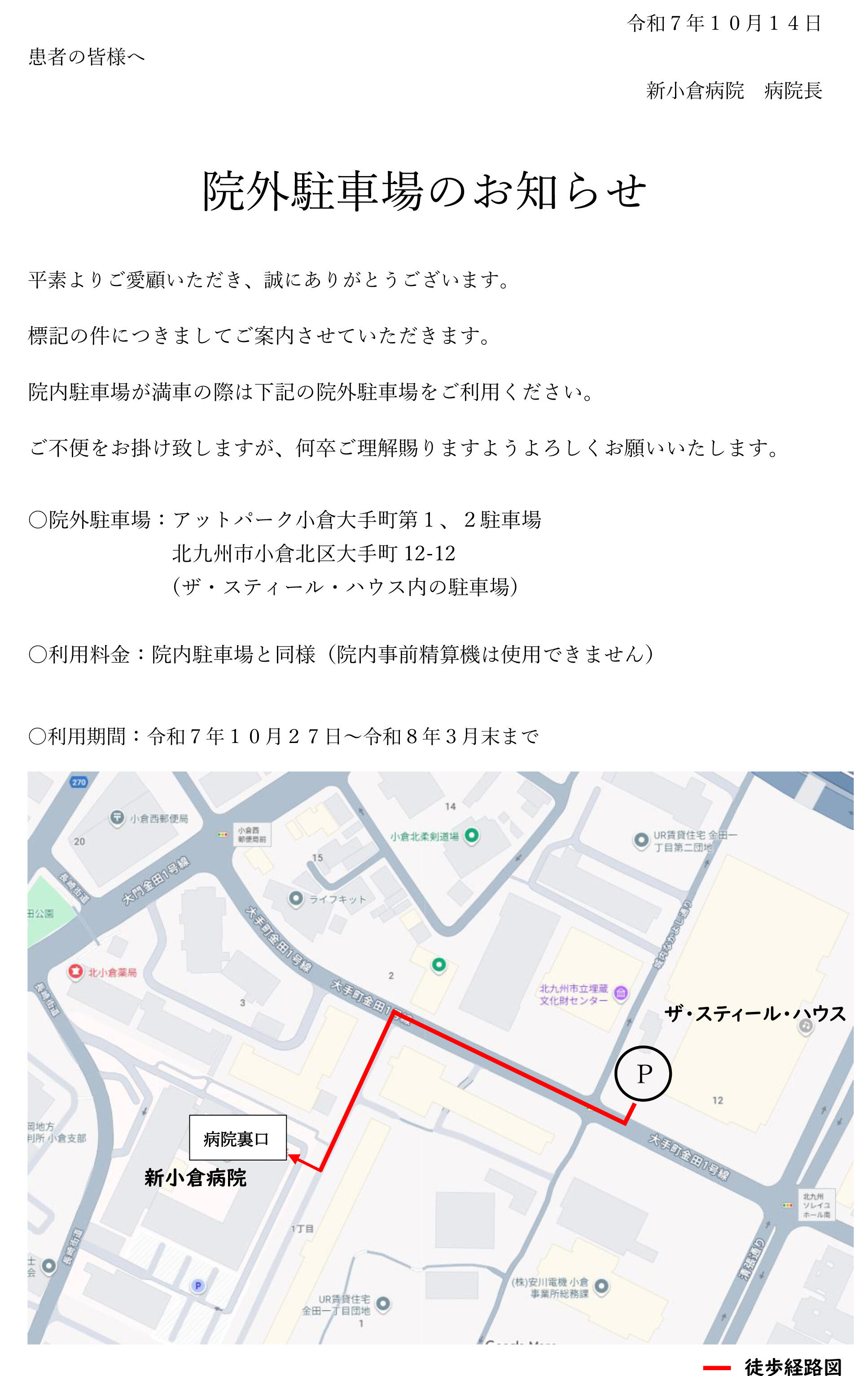 院外駐車場のお知らせ(令和7年10月27日~令和8年3月31日)